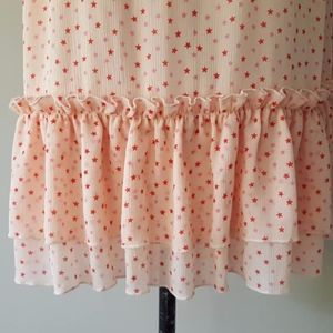 Loc Style Pink Satin Lining Medium Pink Pullover Blouse Top Polka Dots Ruffle