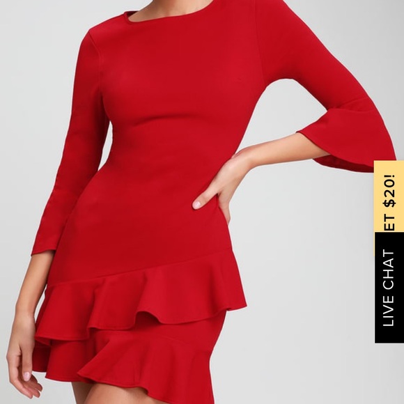 Medium Red Ruffled Bodycon Dress