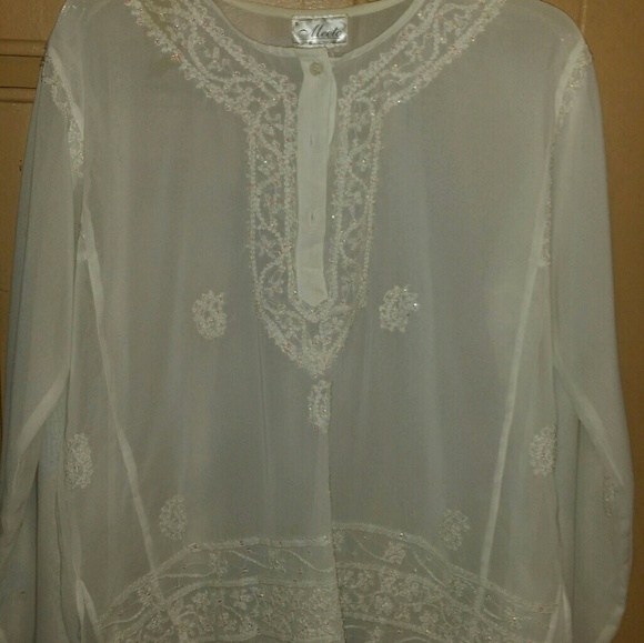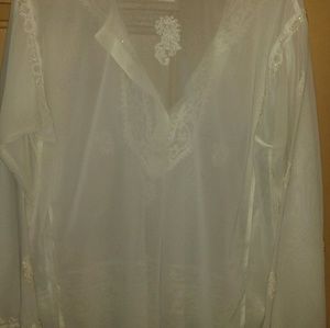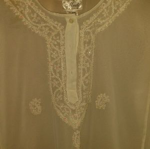 Light weight, sheer, blouse, with beaded embroidered accents, size medium