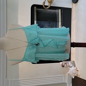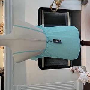 I am selling this never worn beautiful sheer spaghetti strap, aqua with white pokadots tank. Perfect for those hot summer days!
