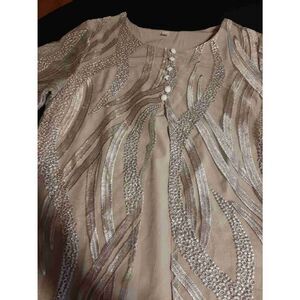 Good Used Condition Women's Size Medium Silver/Grey 3/4 Sheer Sleeve Dressy Mini Dress- Holidays, Party, Dinner, Christmas, New Years, Mother of the Bride Dress