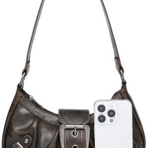 Features: Soft faux leather hobo bag with a vintage crescent shape, featuring adjustable straps, a buckle, and zipper closure. Spacious enough for your phone, mini wallet, cosmetics, keys, sunglasses, and more. Ideal for everyday carry or dressing up your outfit.