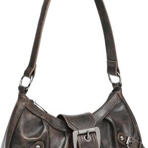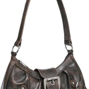 Medium Size Goth Handbag - Stylish Faux Leather Hobo Bag with Zipper Closure