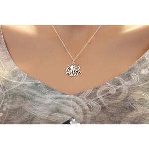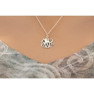 This is a Medium Sterling Silver Octopus Necklace. Both the charm and the chain are made from sterling silver. :) This charm comes on an 18 inch chain.