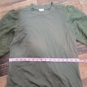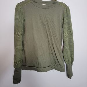 Medium Tiny Anthropologie Army Green Lace Embroidered Sleeve Top