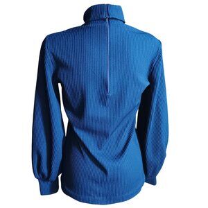 Medium True Vintage Turtleneck Sweater Knit Blue Ribbed Back Zipper 1970s Mod