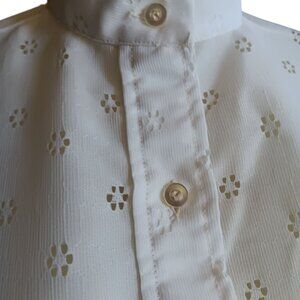 Medium Vintage Blouse White Pierced Eyelet Stand Collar Billow Sleeves Boho