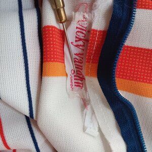 Medium Vintage Sleeveless Striped Mod Dress Stretch Polyester Knit 1960's Mod