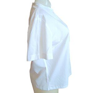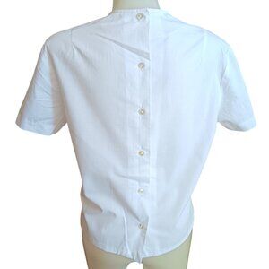 Medium Vintage White Short-Sleeve Blouse Pleated Front Button Back Closure 1960s
