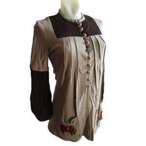 This handmade vintage women's tunic top from the 1970's stands out with its unique elephant pockets. Medium size in a rich brown color, it's crafted from comfortable acetate. Real Mod style for the indie fashion lover.