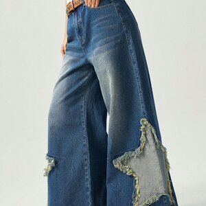 Medium Wash Casual Women's Boho Wide-Leg Jeans