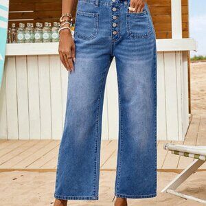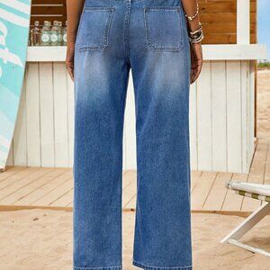 Medium Wash Casual Women's Loose Fitting Straight Leg Blue Denim Jeans