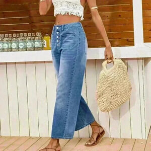 Medium Wash Casual Women's Loose Fitting Straight Leg Blue Denim Jeans