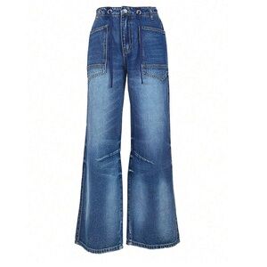 Medium Wash Pockets Drawstring Waist Straight Leg Denim Jean Pants