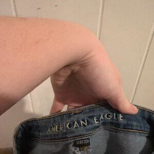 Medium Wash Ripped American Eagle Mom Straight Jeans in size 00 Regular
