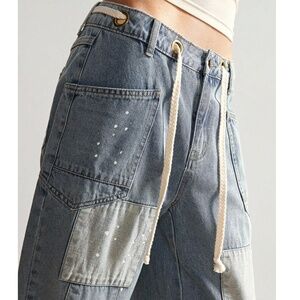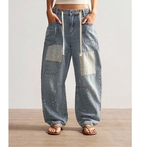 Medium Wash Speckled Color Block Wide leg Denim Jeans