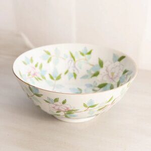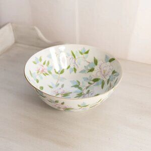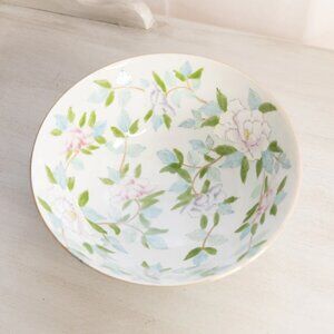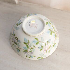 Medium White Ceramic Hand-Painted Multicolor Floral Bowl
