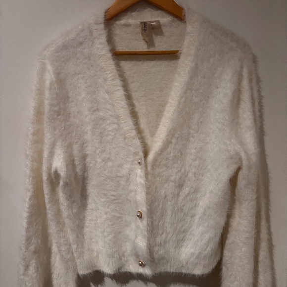 Super soft and sweet fuzzy white cardigan. Size medium, like new condition