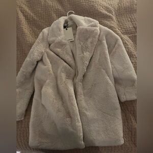 Medium White / Tan Pull & Bear Fluffy Jacket New With Tags
