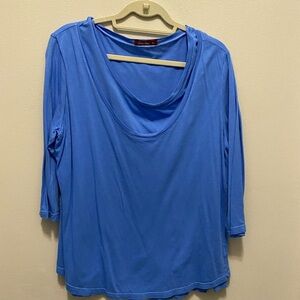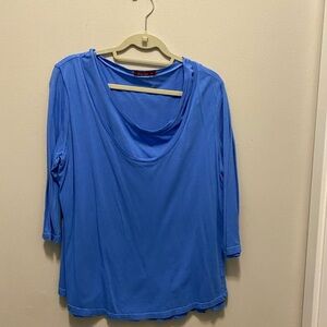 Medium blue Barbara lesser size XL 2 piece top. Very flattering. 50% cotton 50% modal. Machine wash cold and tumble dry. Dimensions are 21” armpit to armpit, body length 28” and long sleeve.