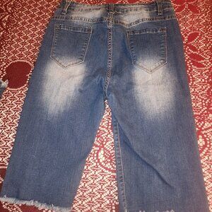 Medium blue ripped shorts with acid wash marks