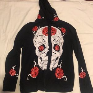 Marilyn Monroe top, skull and roses hoodie, flannel fitted top, all in EUC.