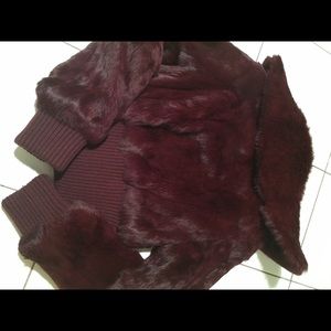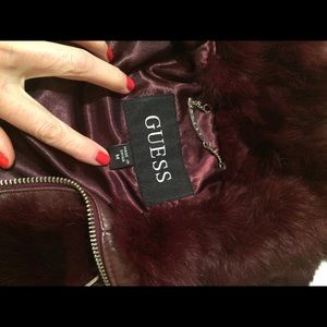 Guess. Size medium genuine leather and real rabbit fur burgundy jacket.