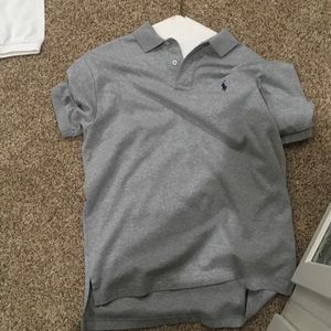 A white and grey medium short sleeve polo
