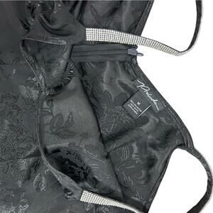 Medium- romper jumpsutt- black rhinestone straps- black florals- zip up