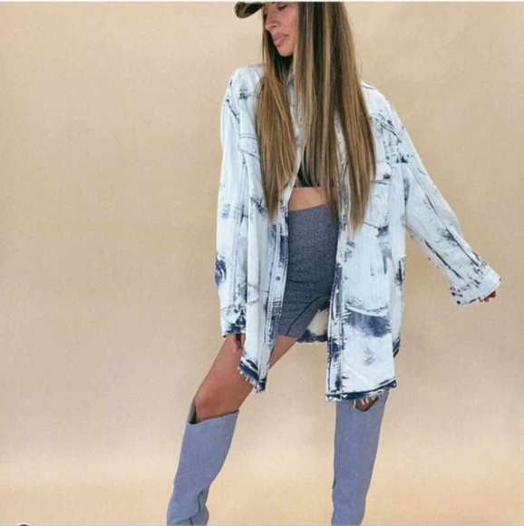 medium, new with tags, bleached denim shacket