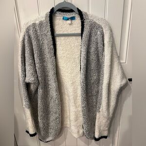 Medium soft teddy Gray and White Knit Cardigan Sweater
