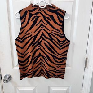 Carmen super soft sleeveless animal print (black and brown) mock turtleneck sweater size Medium