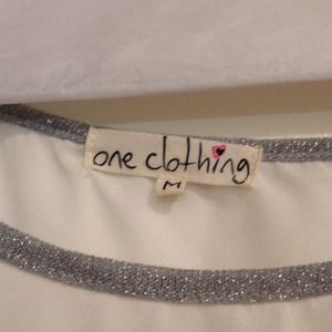Very comfortable and flattering white blouse with silver fabric around the neck and arms.