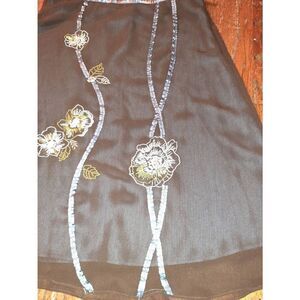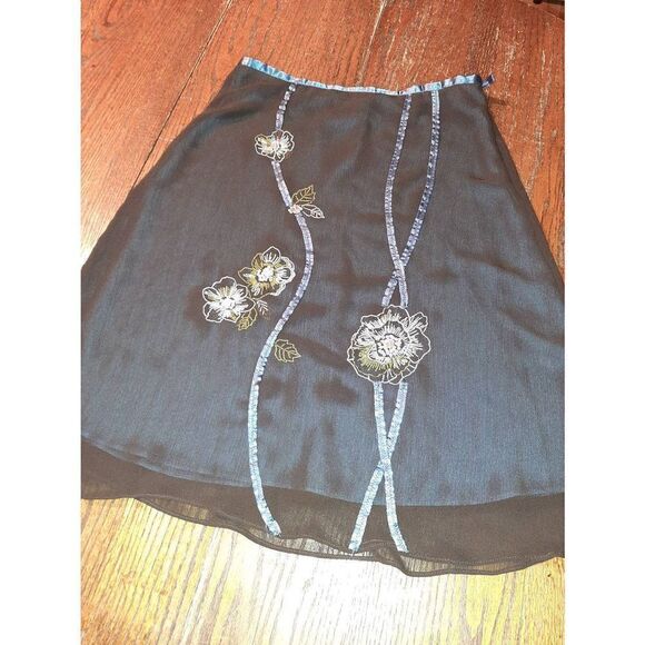 women's size medium Connection 18 black, blue, ivory, brown sequin and bead embellishments floral design lined midi skirt 100% Polyester