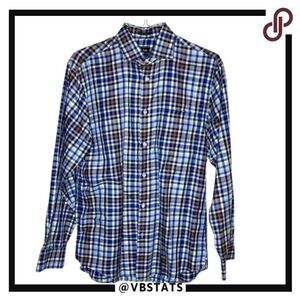 Medium Neiman Marcus Blue-Brown Plaid LS Shirt