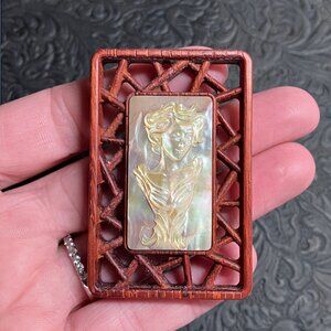 Medusa Bust Mother of Pearl and Wood Pendant Cabochon Mini Art.