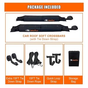 MeeFar Universal Car Soft Roof Rack Pads Luggage Carrier System for Kayak Surfboard SUP Canoe Include 2 Heavy Duty Tie Down Straps, 2 Tie Down Rope, 2 Quick Loop Strap and Storage Bag