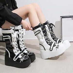 Elevate your style with these edgy platform boots. Featuring lace-up fronts and side zips, they blend punk, grunge, and goth aesthetics. Perfect for making a statement.