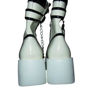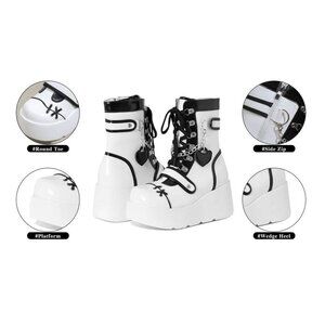 Meefit White Punk Grunge Goth Platform Lace Up & Side Zip Ankle Boots Booties 38