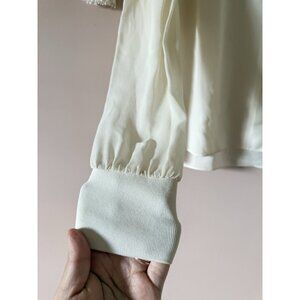 Me+em 100% Silk Cream Zip Up Blouse Feminine Neutral Careerwear Dainty Sheer 16