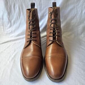 Meermin 101523 Mens Leather Lace Up Cap Toe Jumper Ankle Boots Tan Size 11/US 12