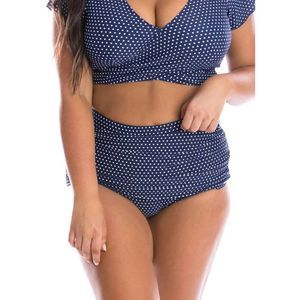 Meet Curve Women's Navy/White Polka-dot Nylon/Spandex Two Piece Swimsuit NEW