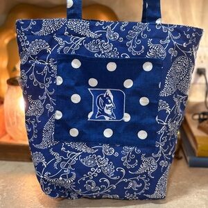 Meet Duke Blue & White Paisley Tote with Structured Design