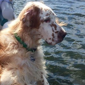 Luke is my English Setter! He is such an awesome buddy! If I could have 10 of them I would! He loves fishing and boating with his sisters (3 Irish setters!!)!
