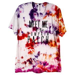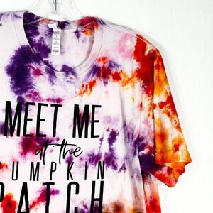 Meet Me at the Pumpkin Patch Large Tee Tie Dye Handmade Purple Orange 1317