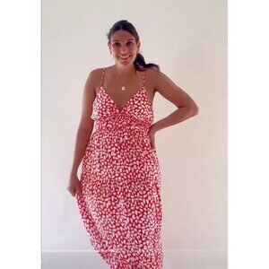 Meet Me in Santorini Tiered Tie Back Maxi Dress Pink White Print Resort XS