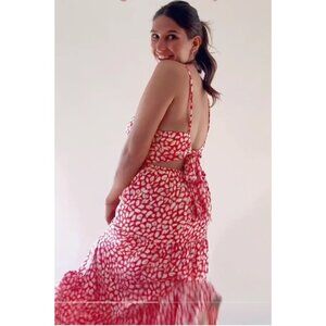 Tags: vacation dress, maxi, boho, bright bold , fun, animal print, tropical, resort, cruise, beach, party, tie back , open back, bow, straps, Satin, Bohemian, Baby shower guest, wedding guest,