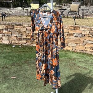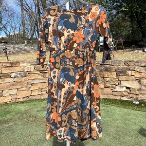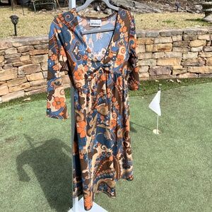 Meet me in Miami Flower Brown, Tan, Blue, and Burnt Orange Maternity Dress