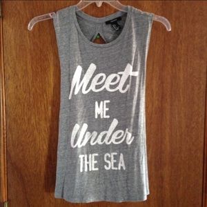 Brand new never worn gray "meet me under the sea" muscle tee tank with twist on back