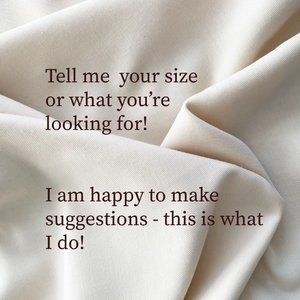 I'm happy to answer any questions you have about anything for sale here - and I'm also happy to suggest items that i think will work for you. I loved working in a shop - dressing people is really my favourite thing!